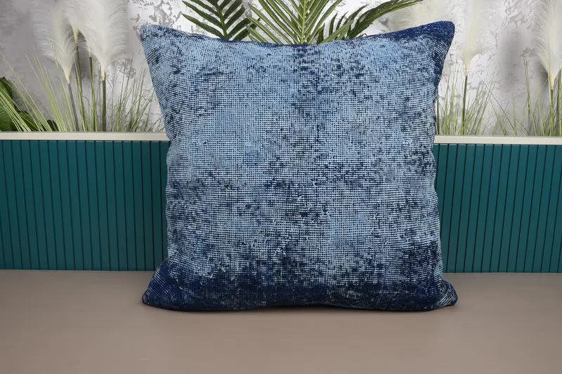 Blaues Southwestern-Wurfkissen, 28x28 besticktes Kissen mit bronzefarbenen Akzenten