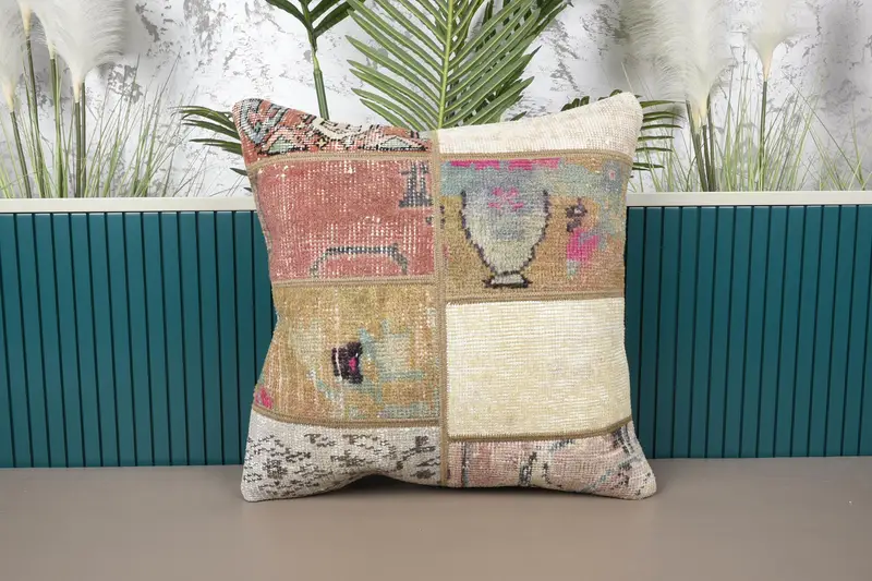 Beige & braunes Patchwork-Wurfkissen, 20x20 Vintage-Kissen