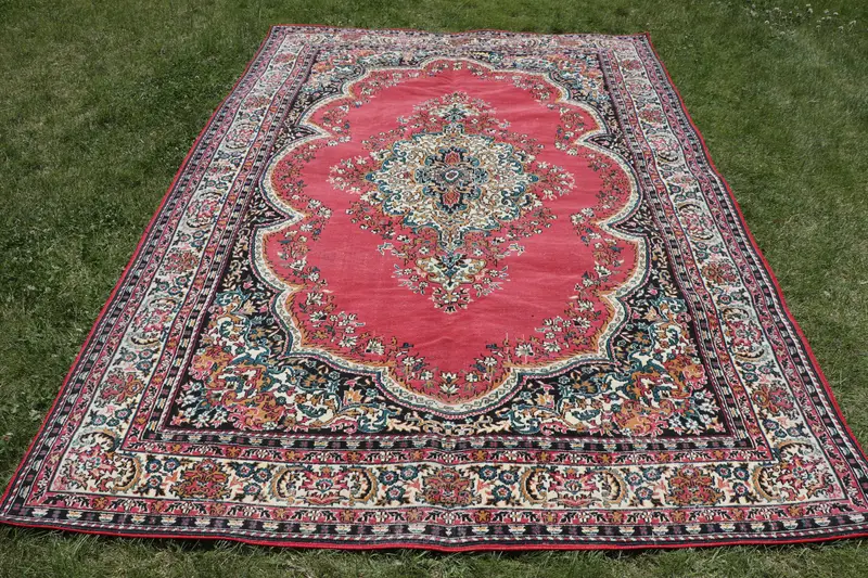Roter Orientteppich, 6,2 x 9,2 Fuß, elegantes rot-schwarzes Design