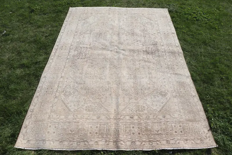 Eleganter beige-brauner Blumenteppich, 6,4 x 9,6 Fuß, schickes Dekor