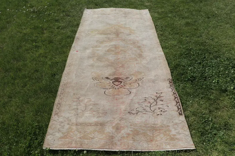 Eleganter beige-brauner Karoteppich, 3,6 x 8,3 Fuß