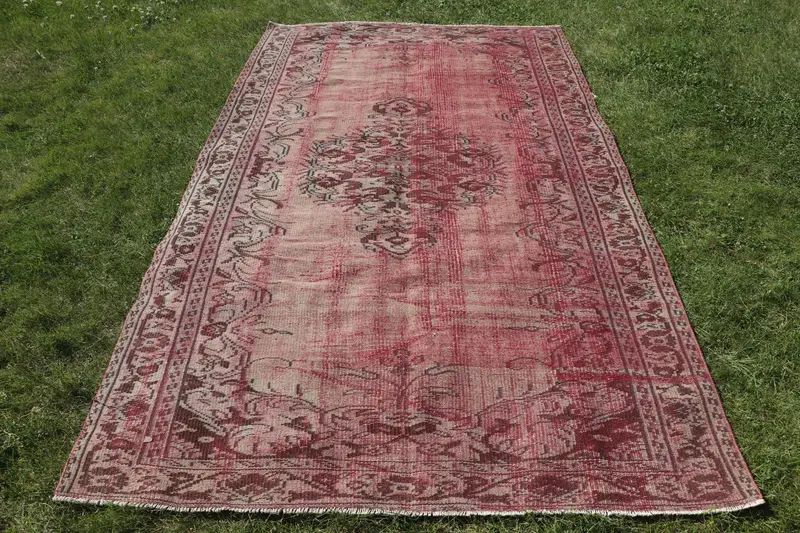 Lila abstrakter Teppich, 5 x 8 Fuß mit grünen Akzenten