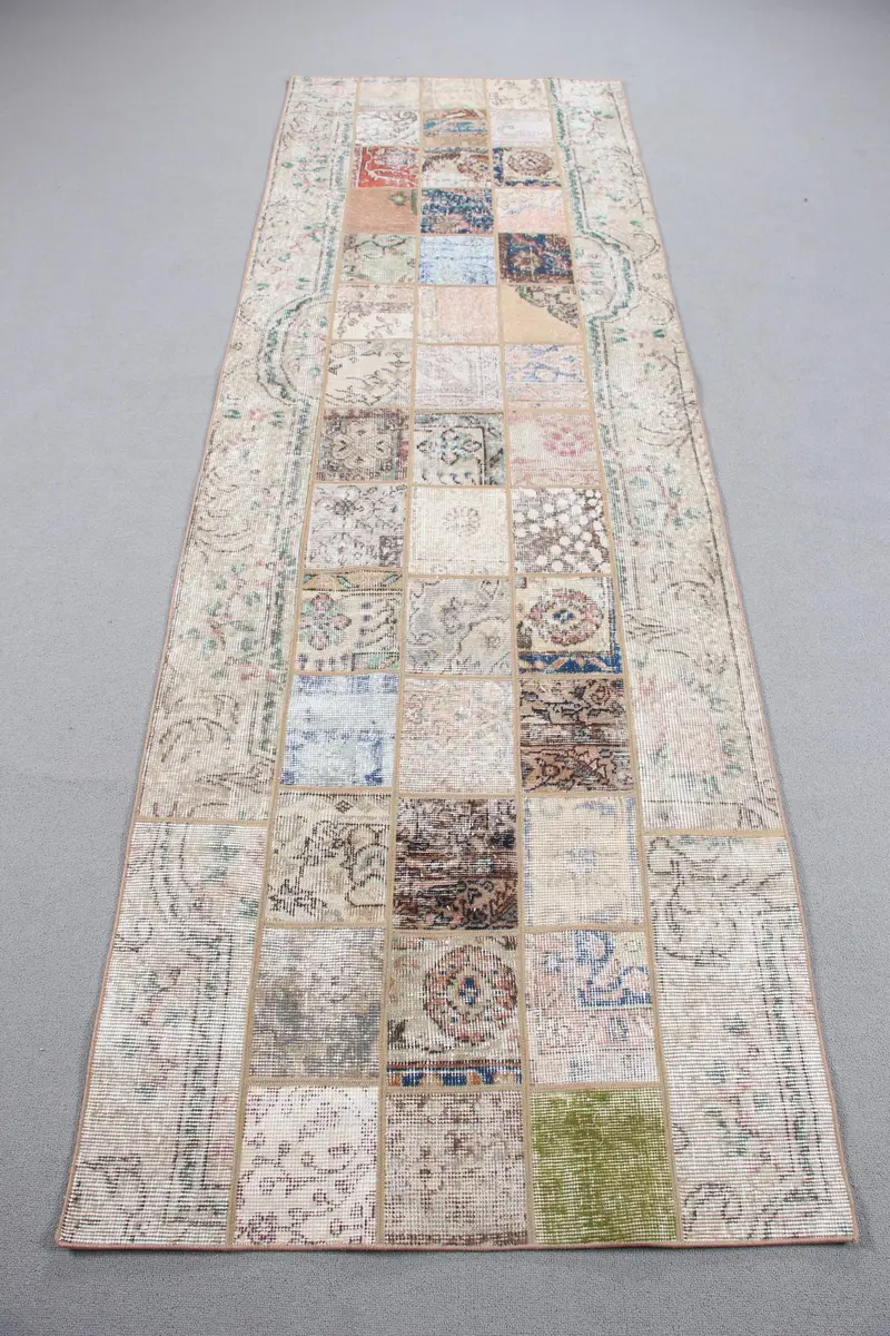 Eleganter beige-grüner Teppich, 3,1 x 9,5 Fuß, geometrisches Blumenmuster