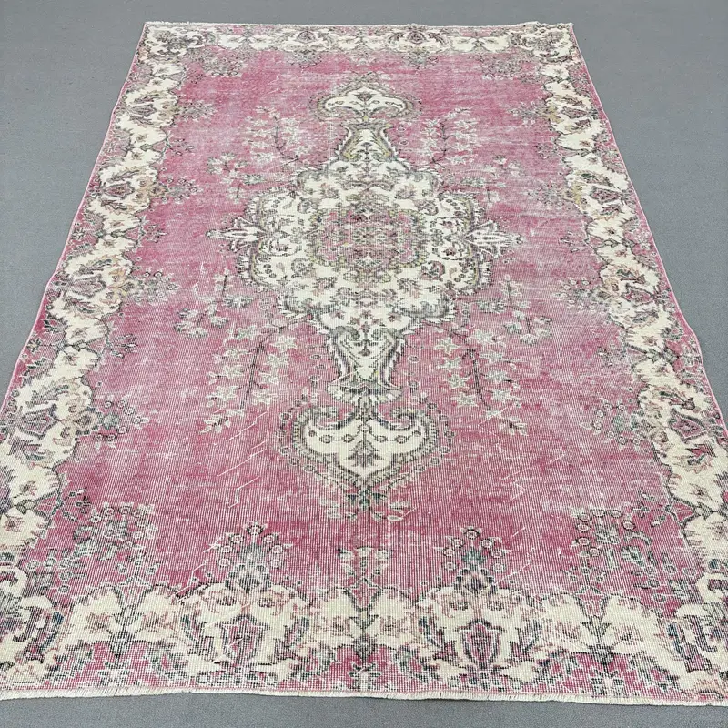 Eleganter Teppich in Rosa und Beige, 5,7 x 8,7 Fuß großes Streifendesign