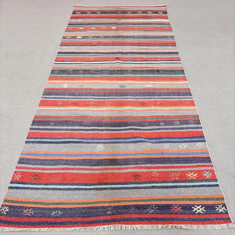 Blauer und roter Patchwork-Teppich, 4,3 x 9,9 Fuß, elegantes Dekor