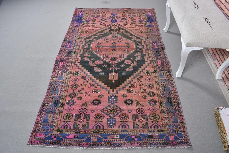 Lebendiger 4 x 7 Fuß großer Teppich, abstraktes Design in Orange und Lila