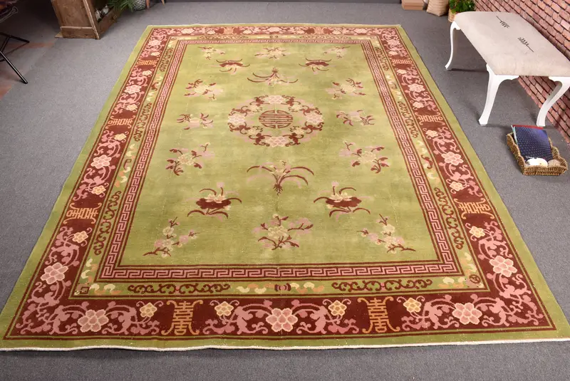 Grüner Perserteppich, 8,1x7,7 Fuß, elegantes Dekor