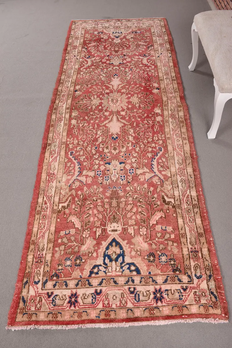 Roter Blumenteppich, 3,2 x 9,7 Fuß, eleganter Beige-Akzent
