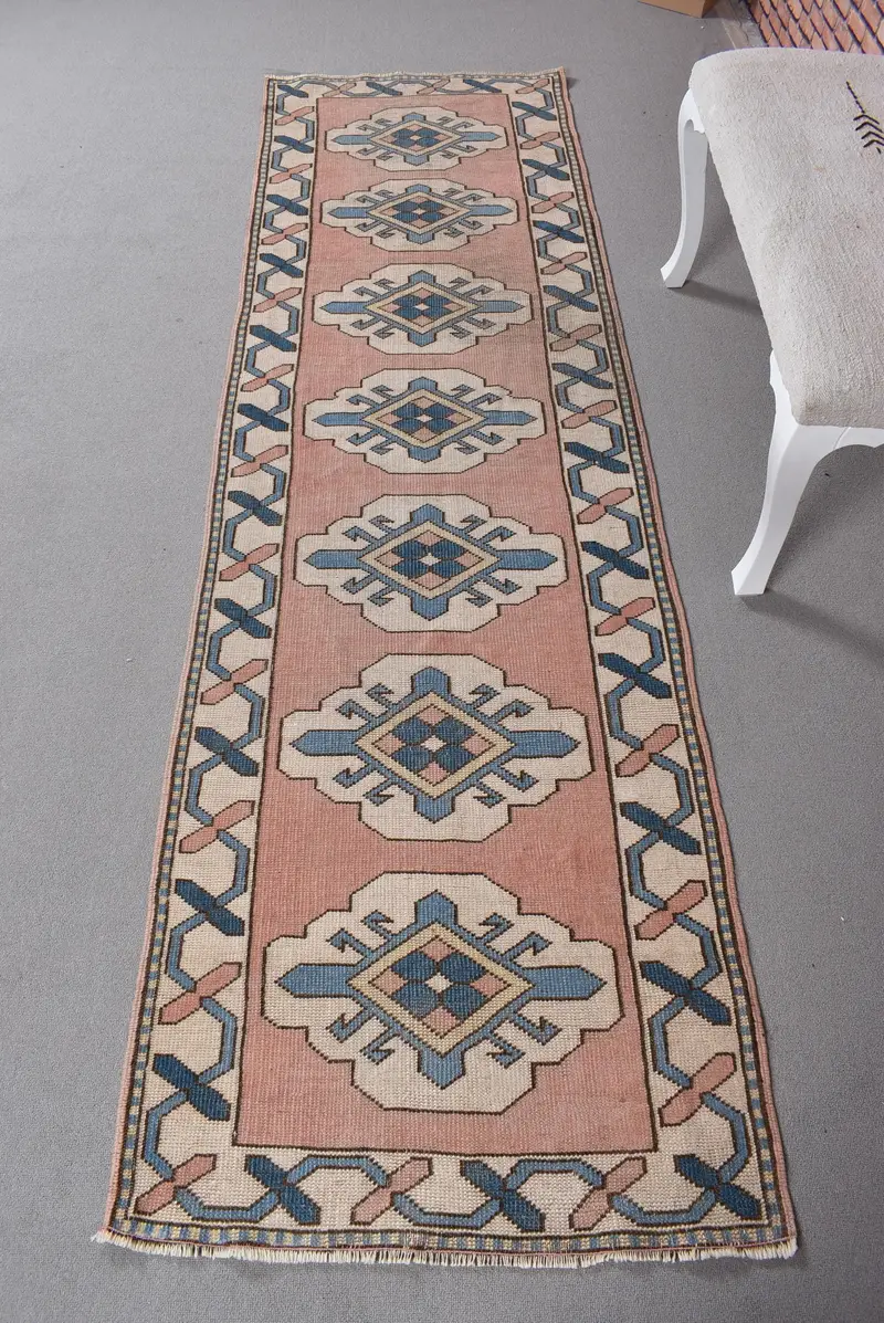 Rosa-blauer Teppich mit Tiermuster, 2,6 x 8,6 Fuß