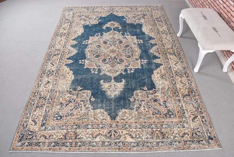 Blauer Tarnteppich, 6,8 x 9,7 Fuß mit orangefarbenen Akzenten