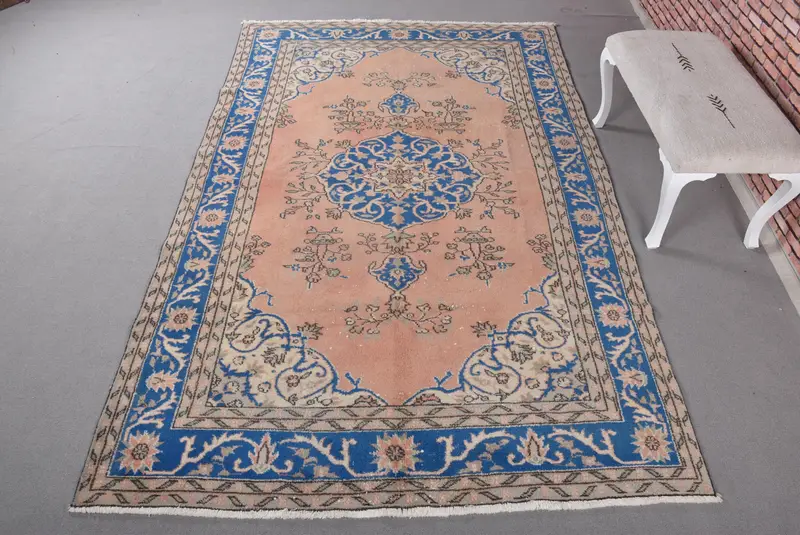 Leuchtender Teppich in Orange und Blau, 6,1 x 9,4 Fuß großes persisches Muster