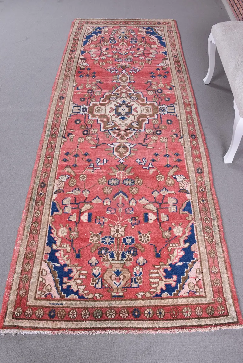 Rot-blau gestreifter Teppich, 105 x 282 cm, elegantes Dekor