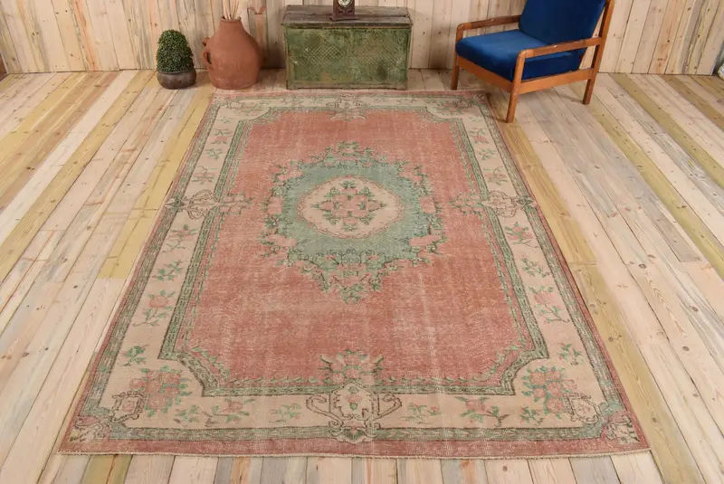 Roter und grüner Teppich, 6,5 x 9,8 Fuß großes Randdesign
