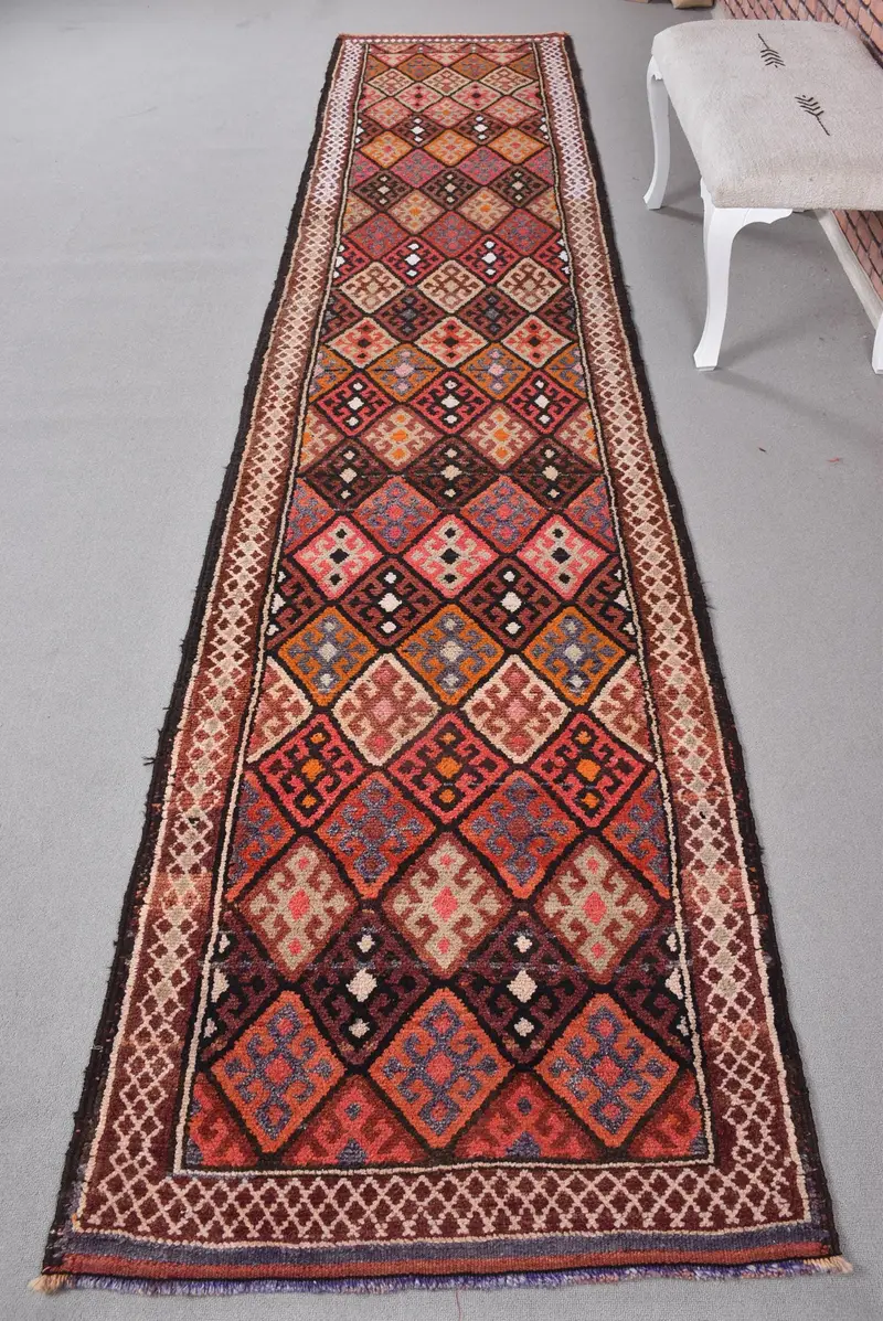 Geometrischer Teppich mit rotem und schwarzem Blumenmuster, 90 x 40 cm