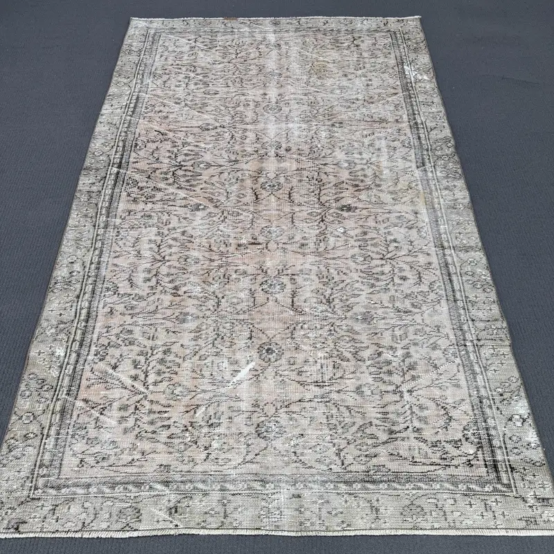 5,2 x 8,5 Fuß großer orangefarbener Teppich, orientalisches Muster mit grünen Akzenten