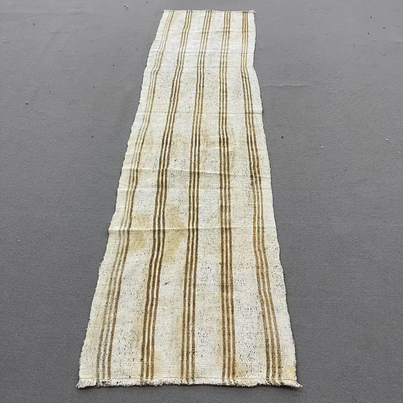 Eleganter beiger Teppich, 2,3 x 8,9 Fuß großes braunes Karomuster
