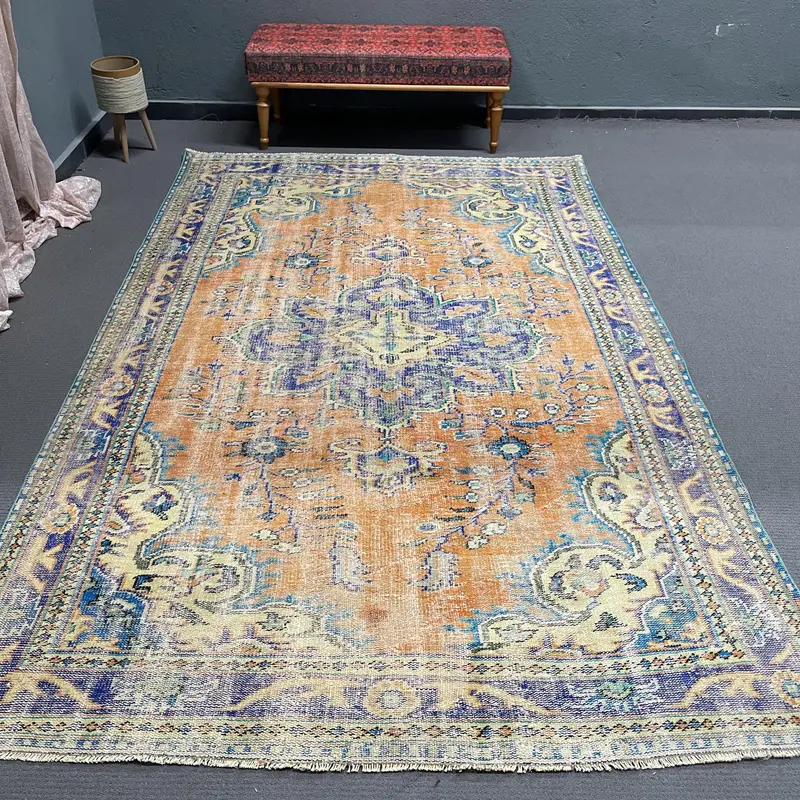 Leuchtender Teppich in Orange und Lila, 6,3 x 9,9 Fuß, abstraktes Design
