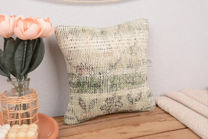 Beigefarbenes Southwestern-Wurfkissen mit braunen Akzenten, handgefertigtes Leinenkissen