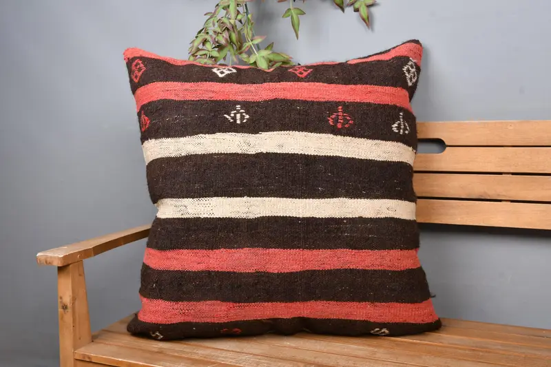 Rustikales gestreiftes braun-weißes Kissen, handgefertigtes besticktes Wurfkissen