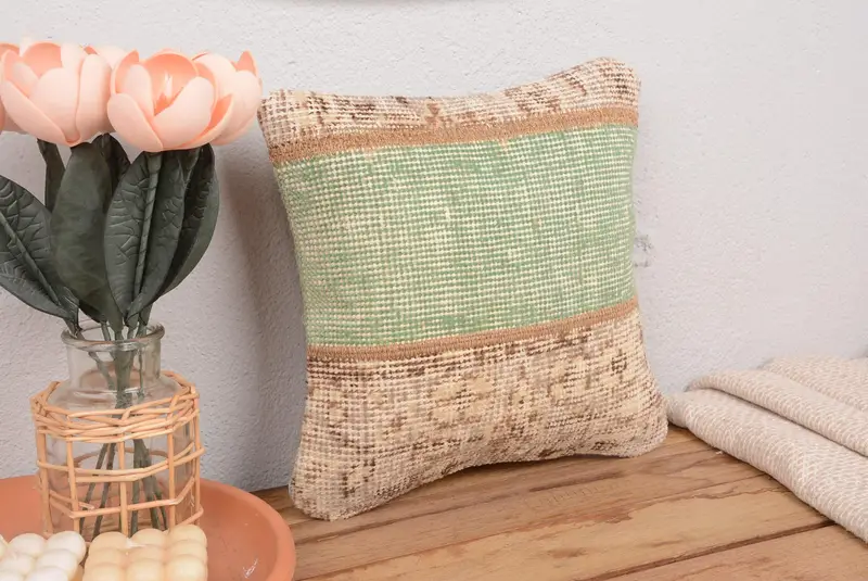 Braunes und beiges Patchwork-Wurfkissen, 12x12 besticktes Kissen