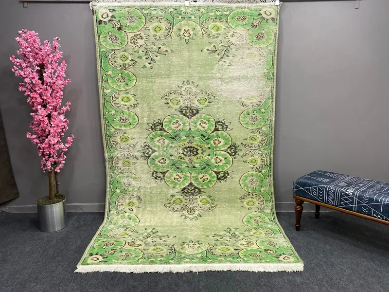 Eleganter grüner Orientteppich, 5,3 x 8,9 Fuß, schickes Dekor