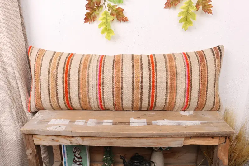 Beige und braun gestreiftes Kissen, 12x36 besticktes Wurfkissen