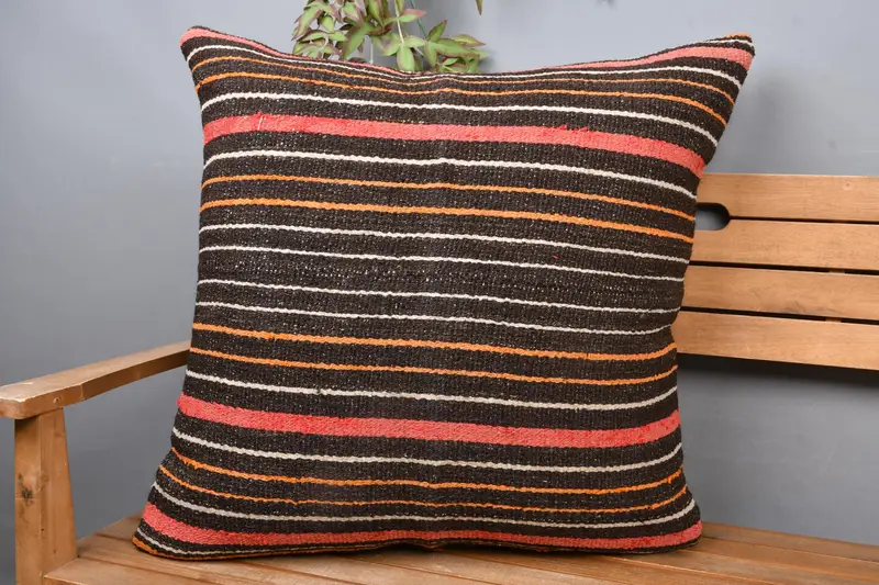 Handgefertigtes braun-rosa gestreiftes Kissen, Boho-Chic-Vintage-Kissen