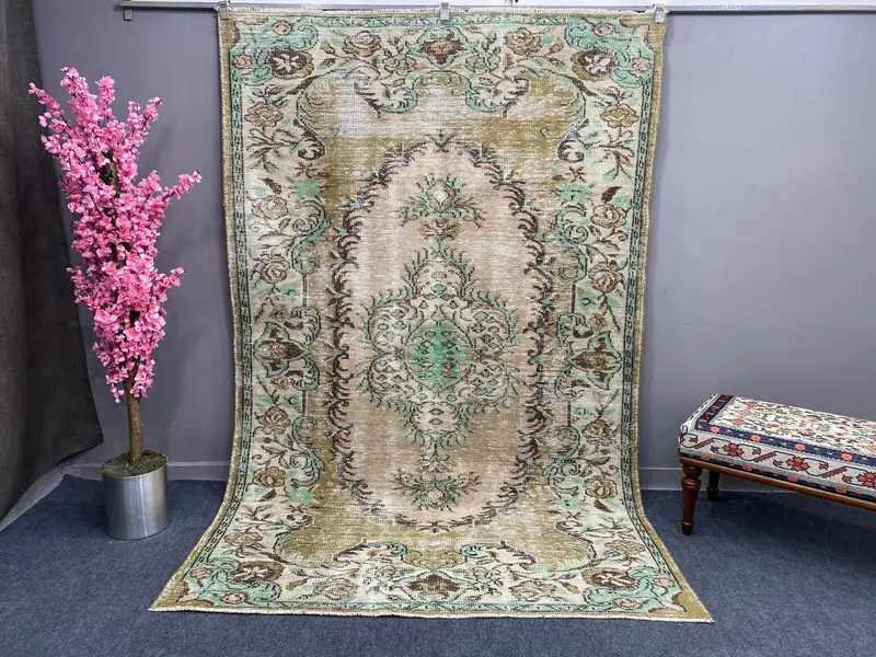 Eleganter brauner Orientteppich, 5,7x8,9 Fuß mit grünen Akzenten