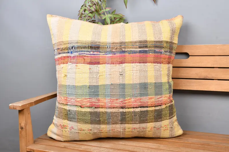 Beige und rot gestreiftes Wurfkissen, 28x28 besticktes Kissen
