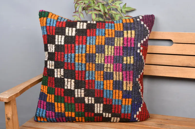 Rot & Grün besticktes Wurfkissen, handgemachtes geometrisches Kissen
