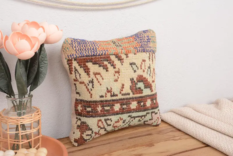 Patchwork-Wurfkissen in Beige und Bronze, Vintage-gesticktes Kissen