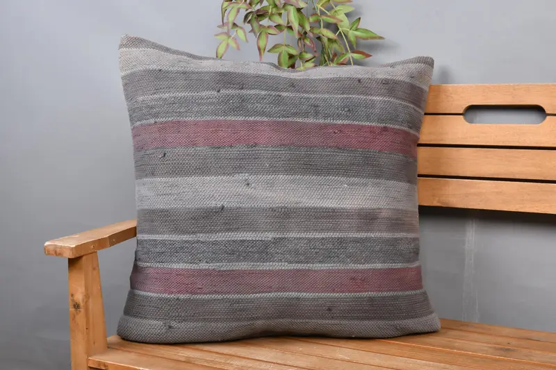 Grün-rot gestreiftes Wurfkissen, 24x24 besticktes Kissen