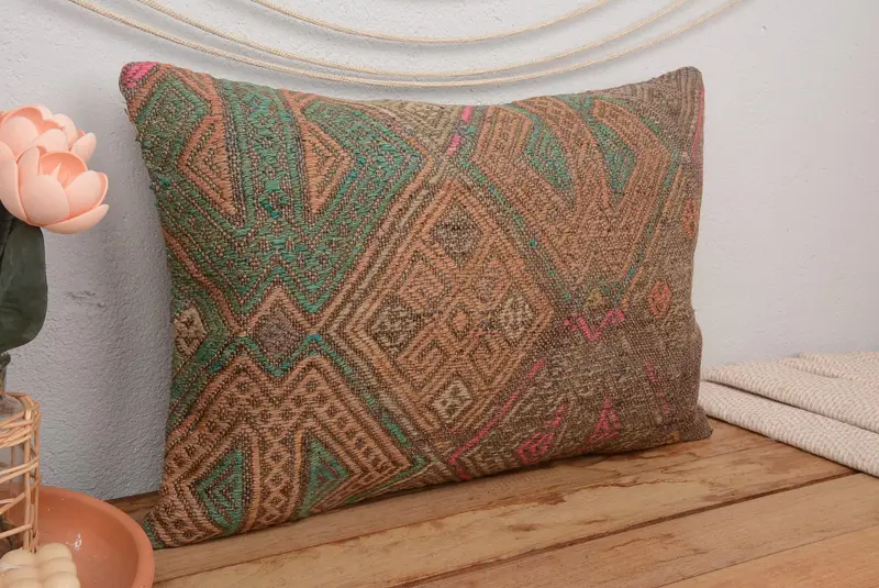 Grün & Braun Blumen besticktes Kissen, 16x24 handgemachtes Wurfkissen