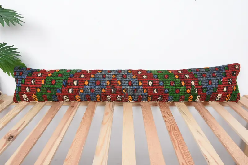 Geometrisches grünes und lila Kissen, 8x42 handgemachtes Wurfkissen
