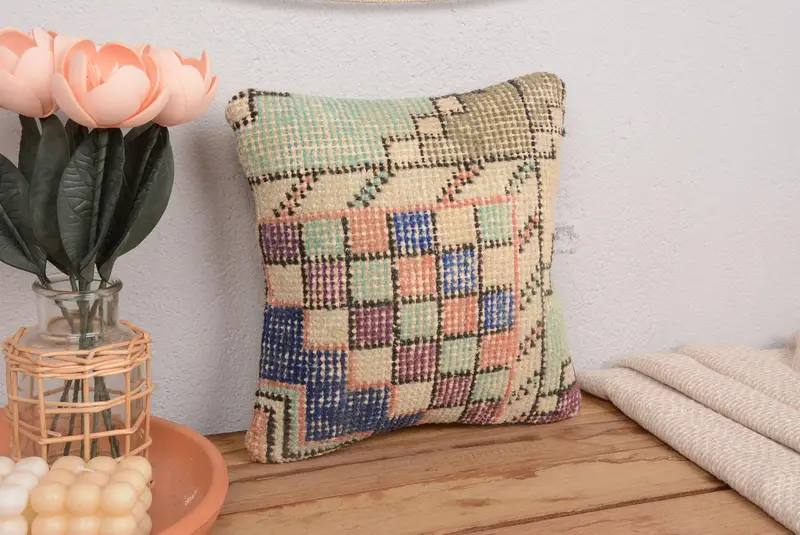Grün & Schwarz besticktes Wurfkissen, handgemachtes Vintage Kissen