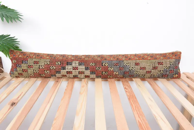 Rot-lila geometrisches Wurfkissen, Vintage besticktes rechteckiges Kissen