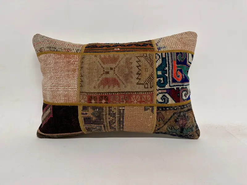 Handgefertigtes 16x24 besticktes Kissen, Vintage Patchwork-Wurfkissen
