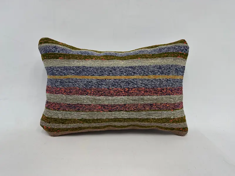 Orange & Bronze gestreiftes Kissen, 16x24 handgemachtes Wurfkissen