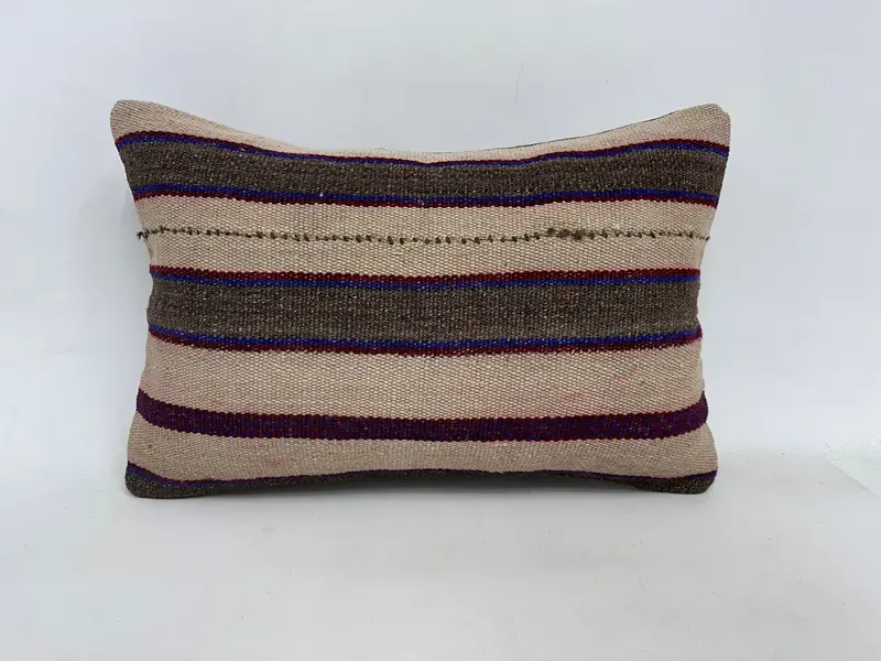 Beige & Bronze gestreiftes Kissen, handgefertigtes besticktes Kissen