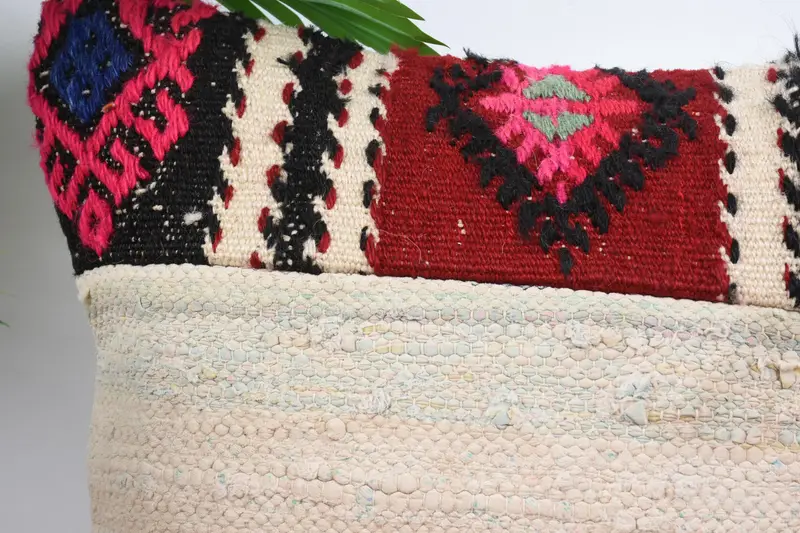 Beige & rosa Patchwork-Wurfkissen, besticktes Vintage-Kissen