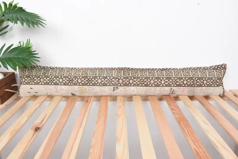 Handgefertigtes besticktes rosa Leinen-Wurfkissen, geometrisches Vintage-Kissen