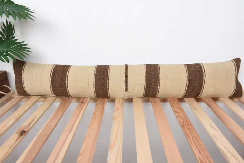 Handgefertigtes Beige & Braun gestreiftes Kissen, Vintage besticktes Kissen