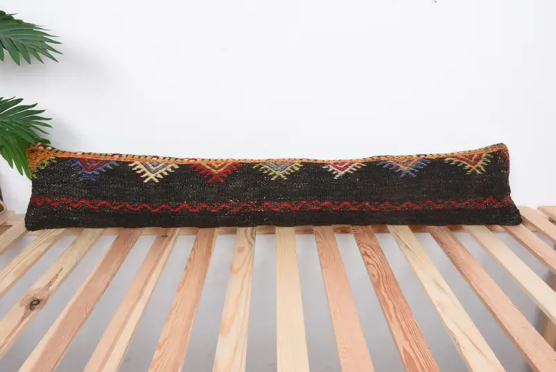 Handgefertigtes lila und grünes geometrisches Leinen-Wurfkissen, Vintage-Rechteckkissen