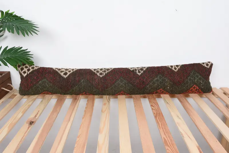 Rotes Leinen-Wurfkissen mit geometrischem Muster, Vintage-gesticktes Kissen