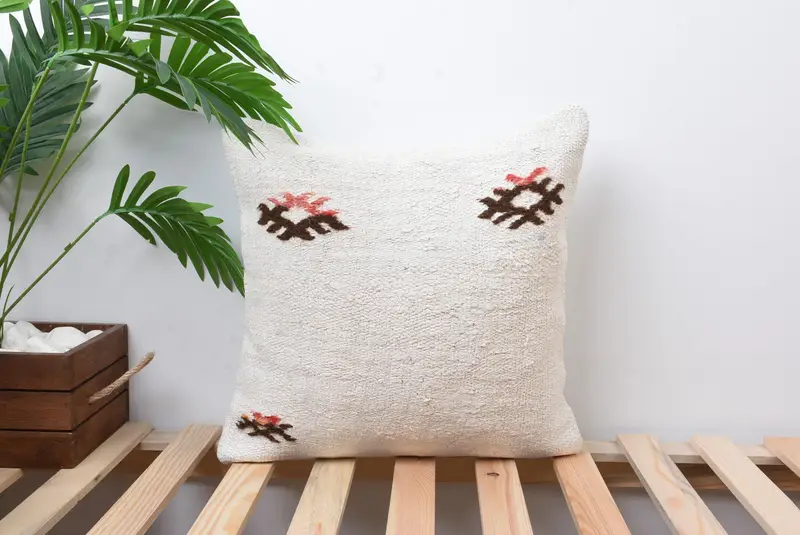 Geometrisches besticktes Kissen in Weiß und Orange, vielseitiges 16x16-Wurfkissen