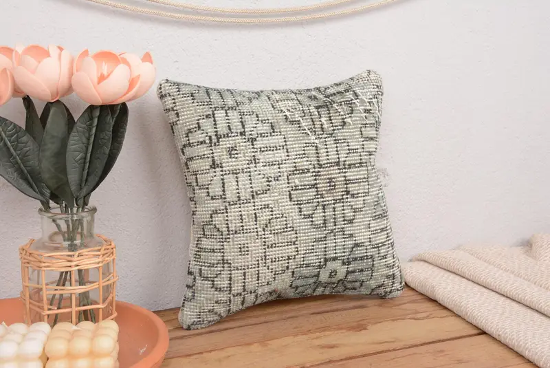 Braunes Leinen-Wurfkissen mit Blumenstickerei, Vintage-Kissen