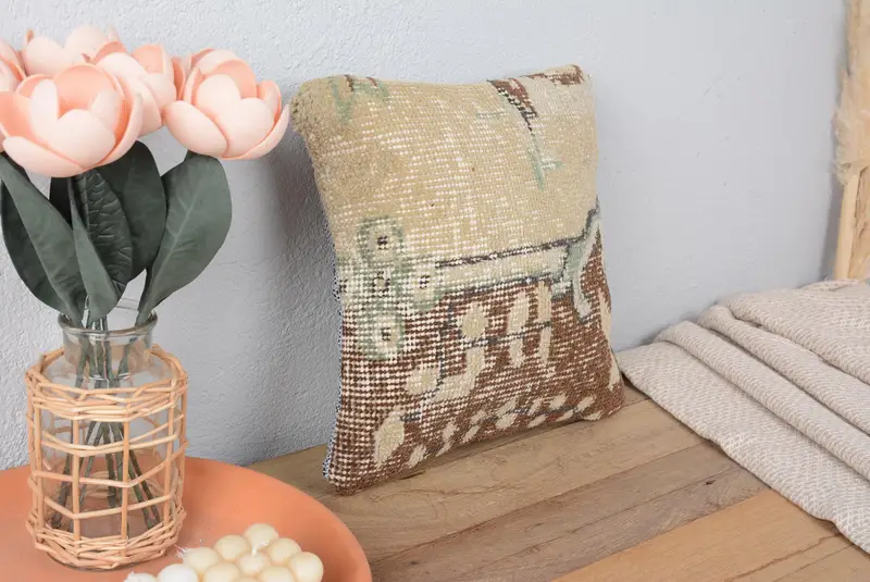 Gesticktes Southwestern-Wurfkissen, Vintage-Kissen in Beige und Braun