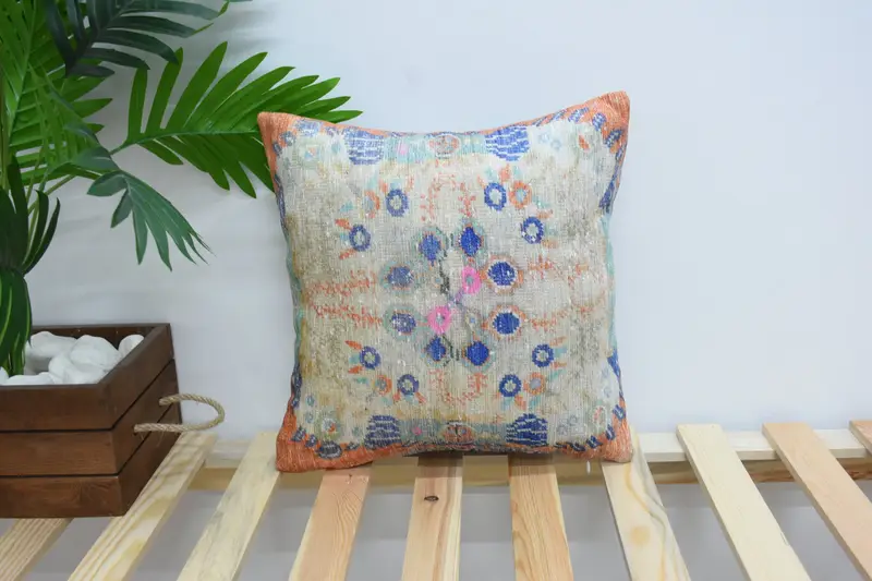Handgefertigtes besticktes Kissen, quadratisches Vintage-Kissen