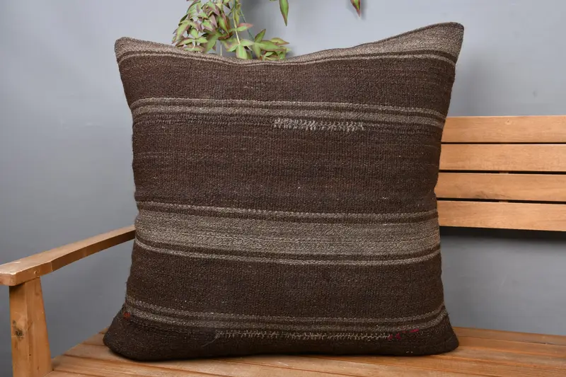 Braun gestreiftes Leinen-Wurfkissen, 28x28 besticktes Kissen