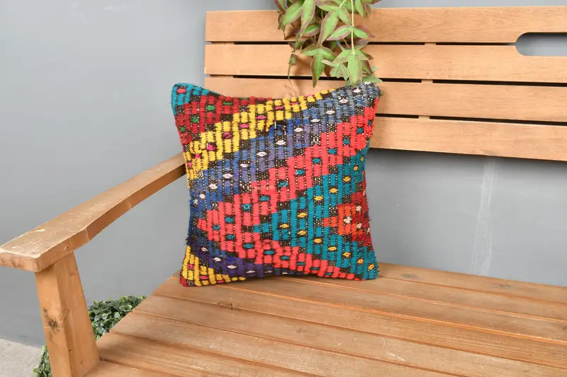 Gesticktes geometrisches Kissen in Lila und Grün, Kissen im Vintage-Stil